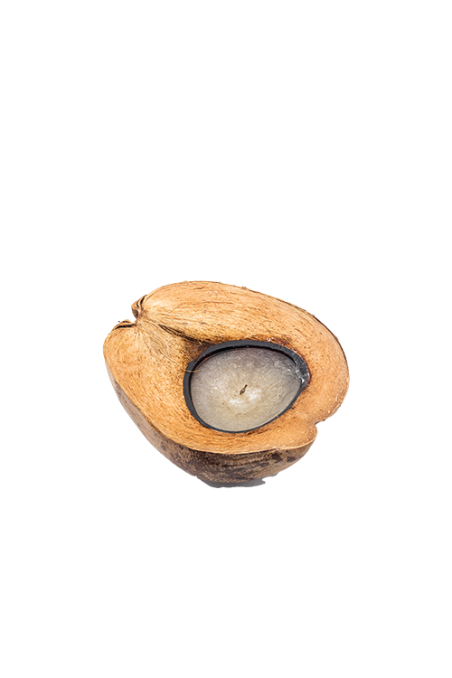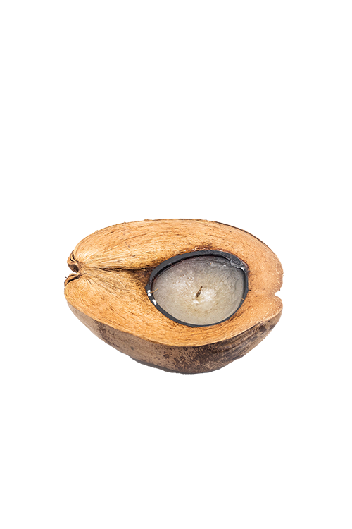 This candle holder is made by cutting a coconut vertically, cleaning it, and filling it with candle wax that emits clove and cinnamon scents. Once the candle wax is over, it can be refilled with the same. This candle holder is made in a way that reduces wastage.