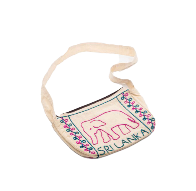 These bags are made with raw fabric materials. The designs are made with banana fiber that has been dyed with the required colours.