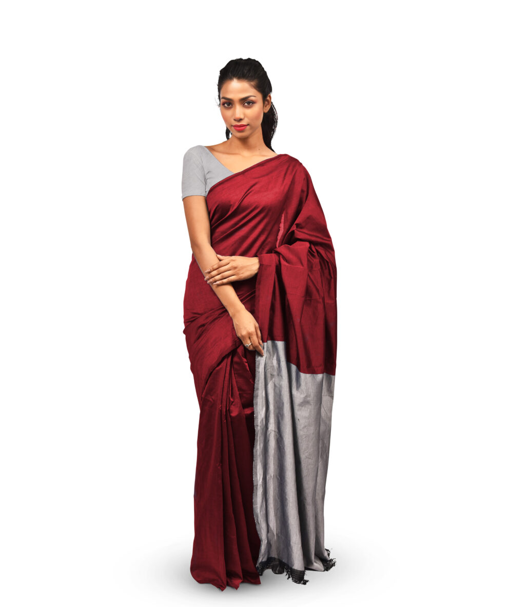 • Saree Colour : Reddish Brown With Ash