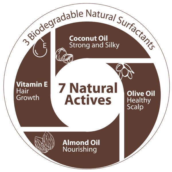 Main Natural Actives: Coconut, Vitamin E, Olive Oil, Almond