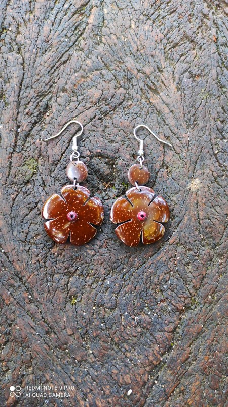 Coconut Shell Earrings Flower Shape
