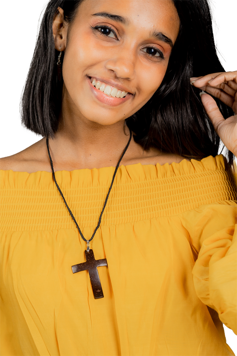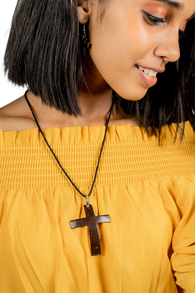 This Cross shape necklace is made with coconut shells.It use Only handmade and can be made in different design using various shapes and carvings.