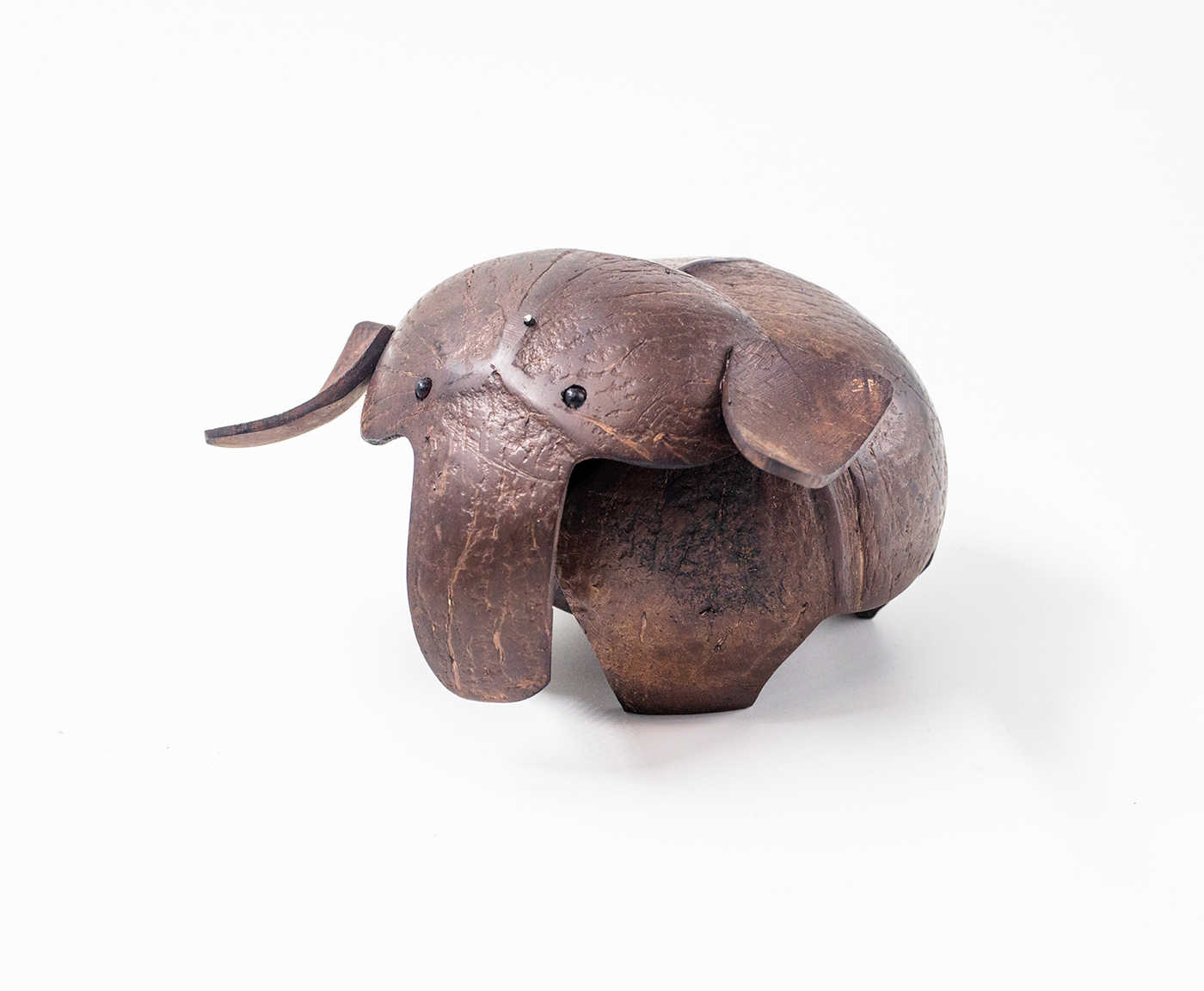 This elephant ornament is made entirely of coconut shell. The elephant’s ears, head, and legs have been separately made with coconut shells and attached to the body. Next, the elephant’s body is hand-carved by our craftsmen. Finally, the complete elephant ornament is waxed to bring a shine to it.Both matt and shine versions are available.