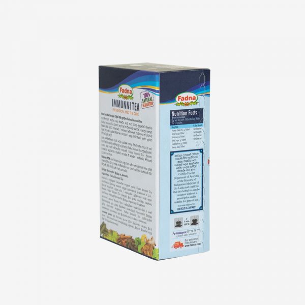 The goodness and taste of Immunni tea makes consumption easy, while it fights diseases and strengthen the immune system. At present, the spread of communicable diseases such as cough, cold, flu etc., have increased due to lack of nutrition, stress and breaking rest which in turn has resulted in the weakening of the immune system. Discomfort caused by such ailments can now be controlled by consuming Immunni tea, several times a day.