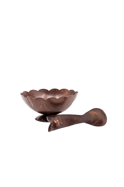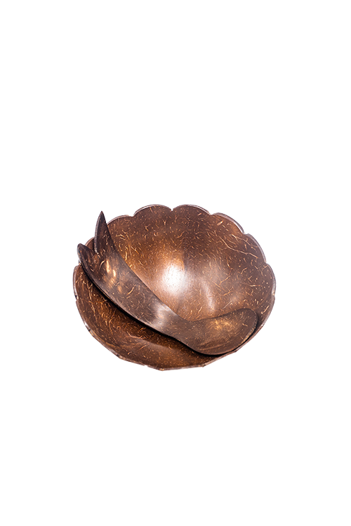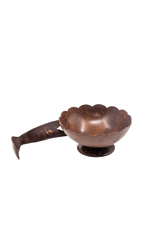 This Flower designed dessert cup is made entirely with coconut shell. The cup and spoon can be made to customized sizes and designs.