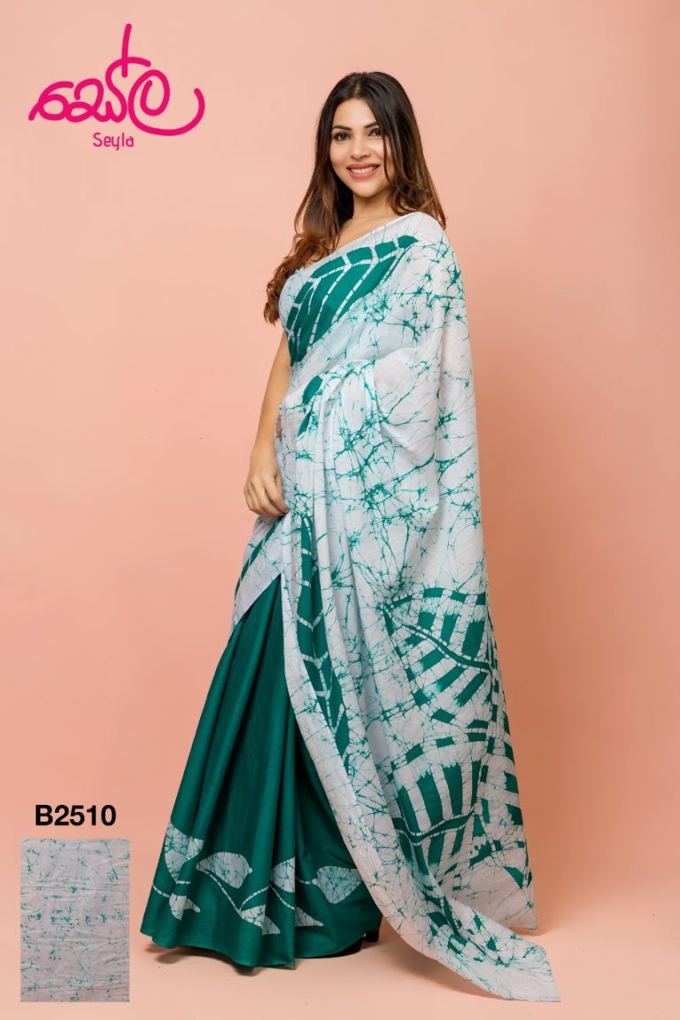 Seyla Batik Saree is fully handcrafted by artisan of Sri Lanka. This cotton material drapes beautifully and comfortable to wear. An elegant saree brings out the renewed and simple feel but that gives its luxurious look
