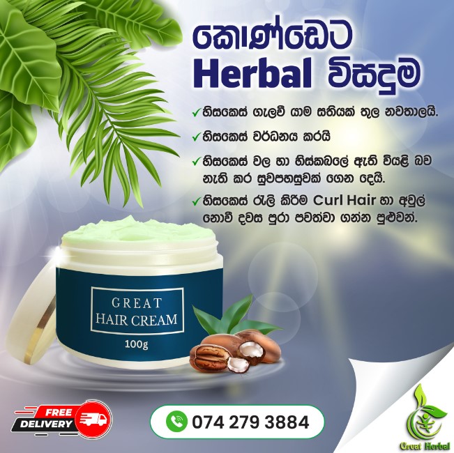 ප්රතිඵල සහතික කරන ලංකාවේ එකම ආයතනය වන Great Herbal වෙතින් එන Great Herbal Hair cream