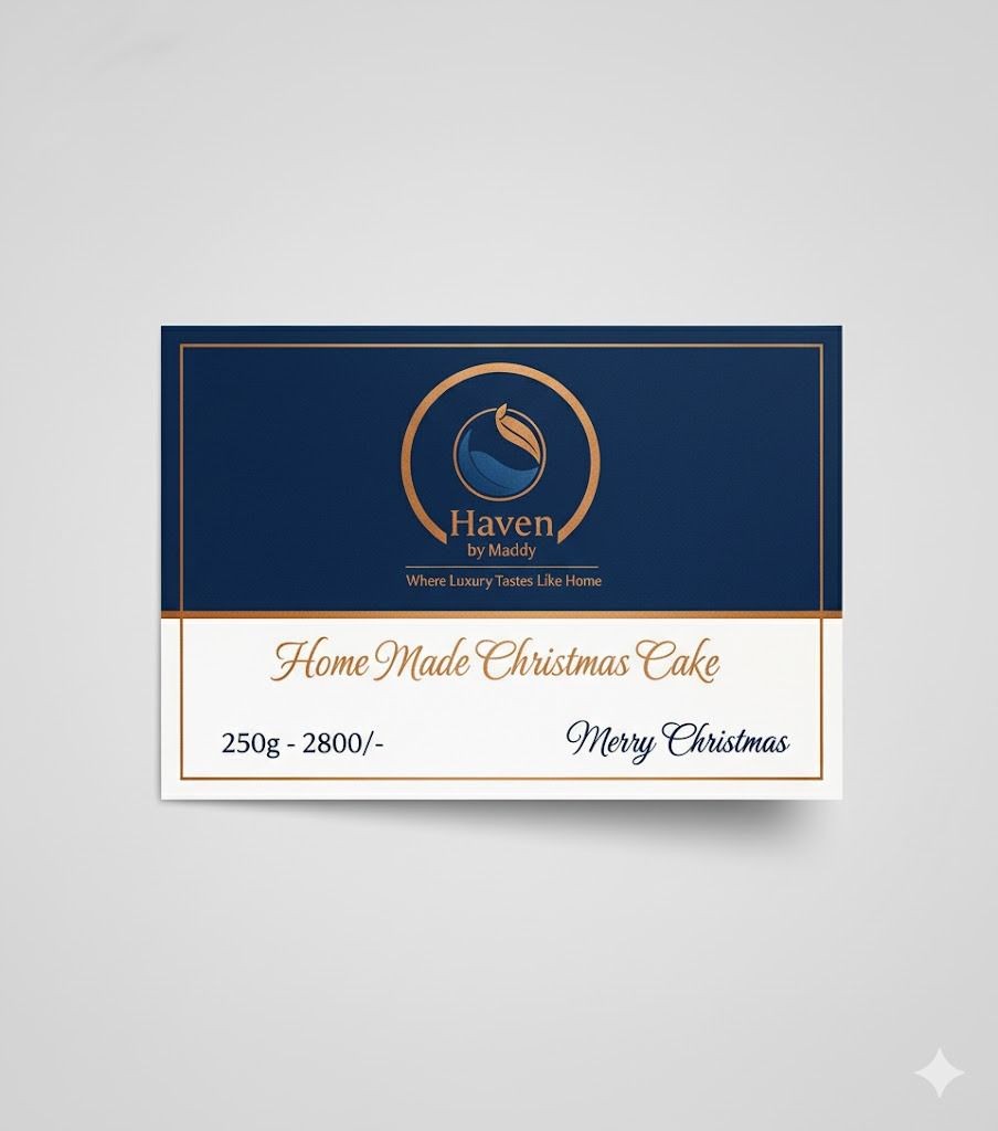 Celebrate the festive season with Haven by Maddy’s Homemade Rich / Christmas Cake. Made using traditional recipes and premium ingredients, this cake is packed with dried fruits, nuts, and aromatic spices for a moist, flavorful, and indulgent experience.