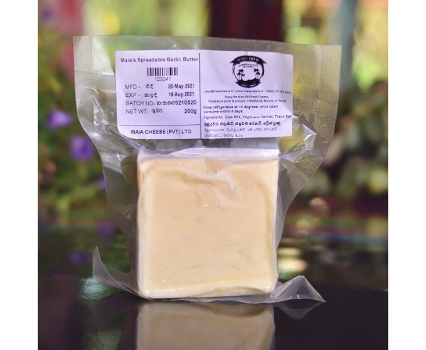 Maia's garlic butter is a creamy spreadable butter with a tasty garlic flavor. In a tasting session, this garlic butter came out tops even beating queens blue. Spread the garlic butter on toast for a yummy snack or use it in your cooking. Store frozen but once opened store in the refrigerator and consume within 4 days.