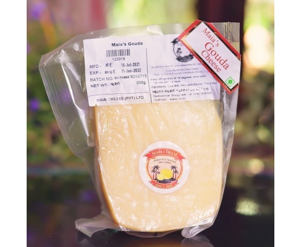 Maia's gouda has that glowing color that defines gouda. Its texture is smooth and creamy. Maia's Gouda can be eaten cold and adorn your cheese board or melted in a cooking dish. There are no artificial flavorings or preservatives. A well known international cheese, this is the Sri Lankan's version made from rich local cows milk, vegetable rennet and trace salt. Consume within 4 days of opening.
