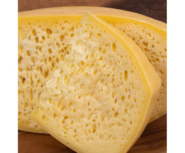 Maia's Emmental (Swiss cheese) bring out nutty flavor, and a firm yet pliable texture. It is a semi-hard cheese that is made from cow's milk, and is characterized by its distinctive large, round holes or "eyes" that are created during the cheese-making process. It is often used in cooking, particularly in fondues and gratins, and is also a popular cheese for sandwiches and snacking.