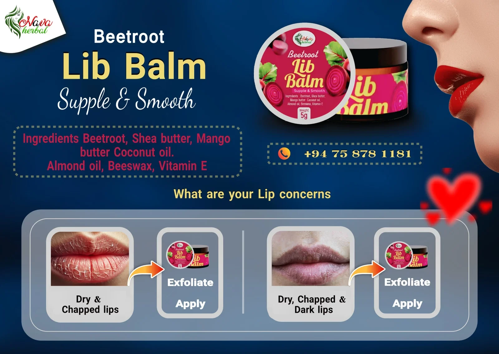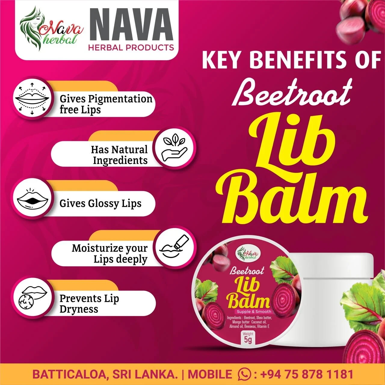 Nourish and enhance your lips naturally with Nava Herbal Beetroot Lip Balm, enriched with beetroot extracts and herbal ingredients.