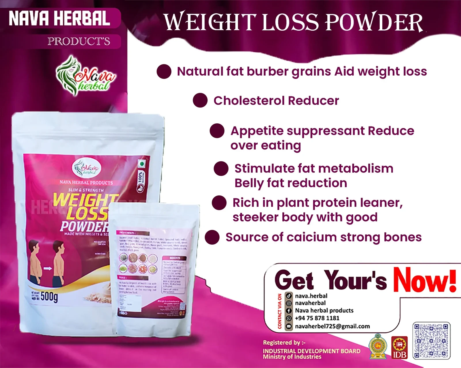 Support your healthy weight management naturally with Nava Herbal Weight Loss Powder, a premium blend of millets, superfoods, and herbal ingredients.