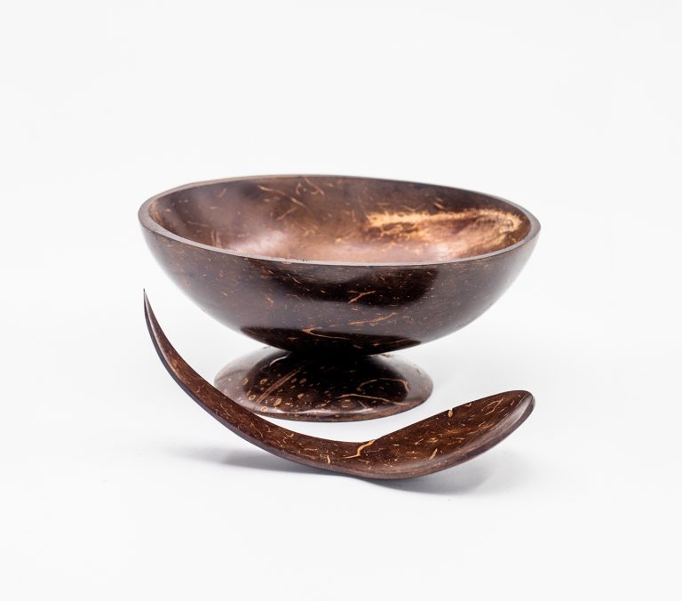 This Oval designed dessert cup is made entirely with coconut shell. The cup and spoon can be made to customized sizes and designs.