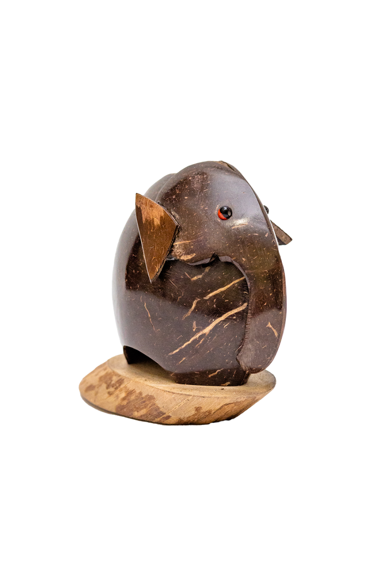 This Paper Weight is made with coconut shell with rosary pea used for the eyes and it’s made like elephant. The elephant is kept on a platform that is made with heavy wood such as satinwood.