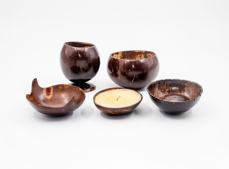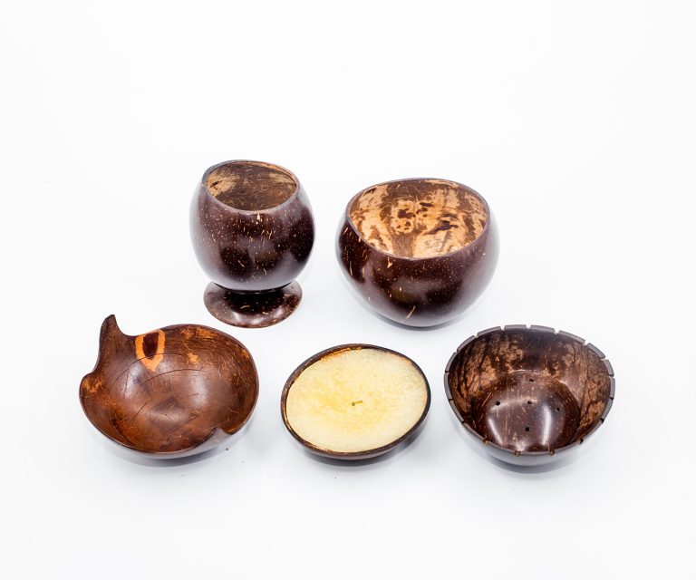 This set can be used for religious offering including offering to Lord Buddha. It is made of coconut shell and can be used to keep flower,candle holder,winery,food bowl and incense sticks during religious offerings. It can be customized to any design including a lotus flower, Bo leaf, or any other.