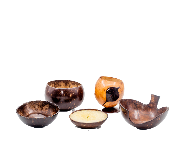 This set can be used for religious offering including offering to Lord Buddha. It is made of coconut shell and can be used to keep flower,candle holder,winery,food bowl and incense sticks during religious offerings. It can be customized to any design including a lotus flower, Bo leaf, or any other.