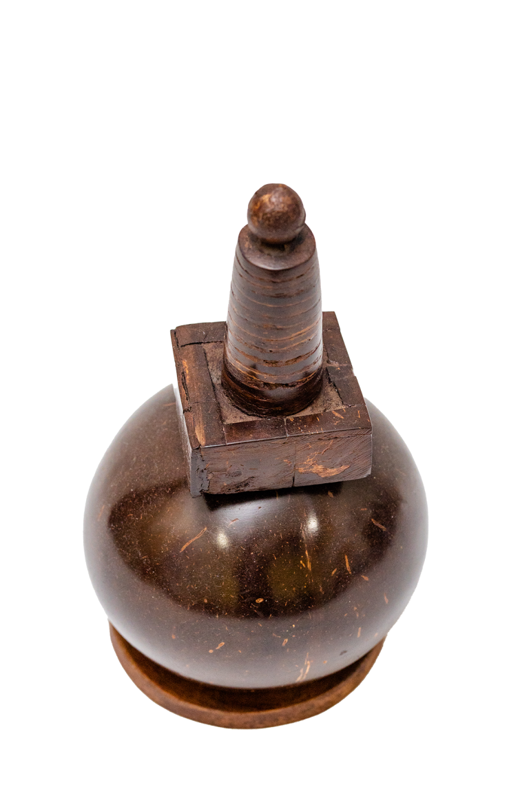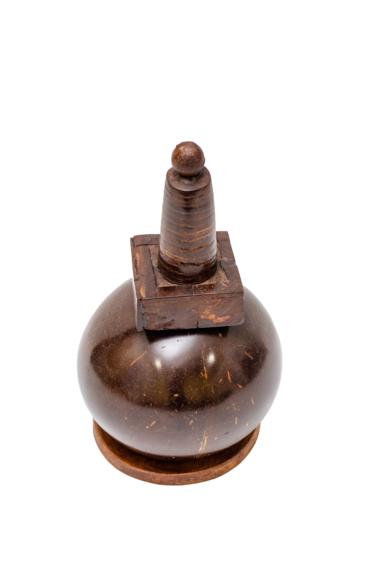 This pagoda is made from an entire coconut. The base structure can be customized accordingly with two or three circles. The top of the pagoda is made with pieces of coconut shell. It could be made with wood and customized according to requirements.
