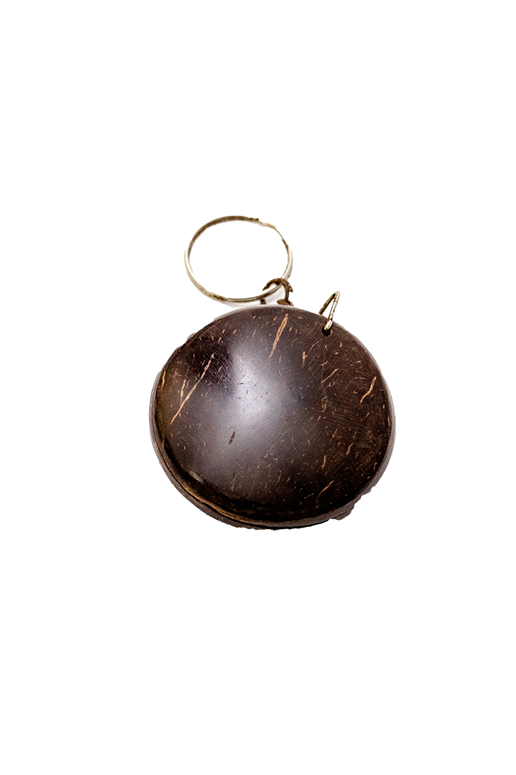 This Three eyes mat designed key tag is made with coconut shell. It can be made in various designs likes this carvings.