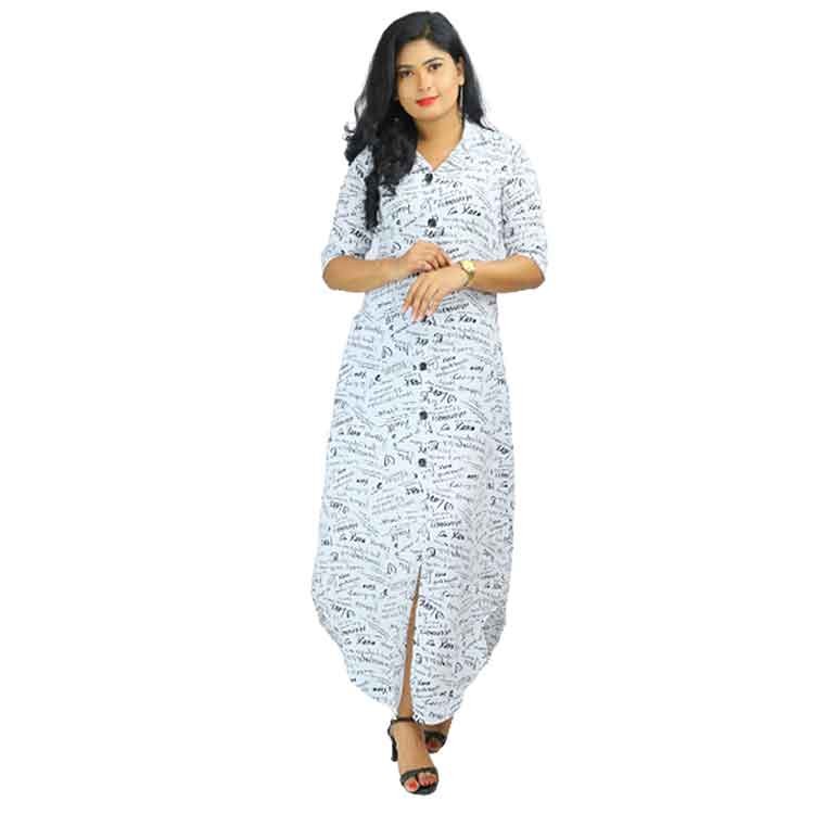 Three-Quarter Sleeves New Maxi Dress with Buttons