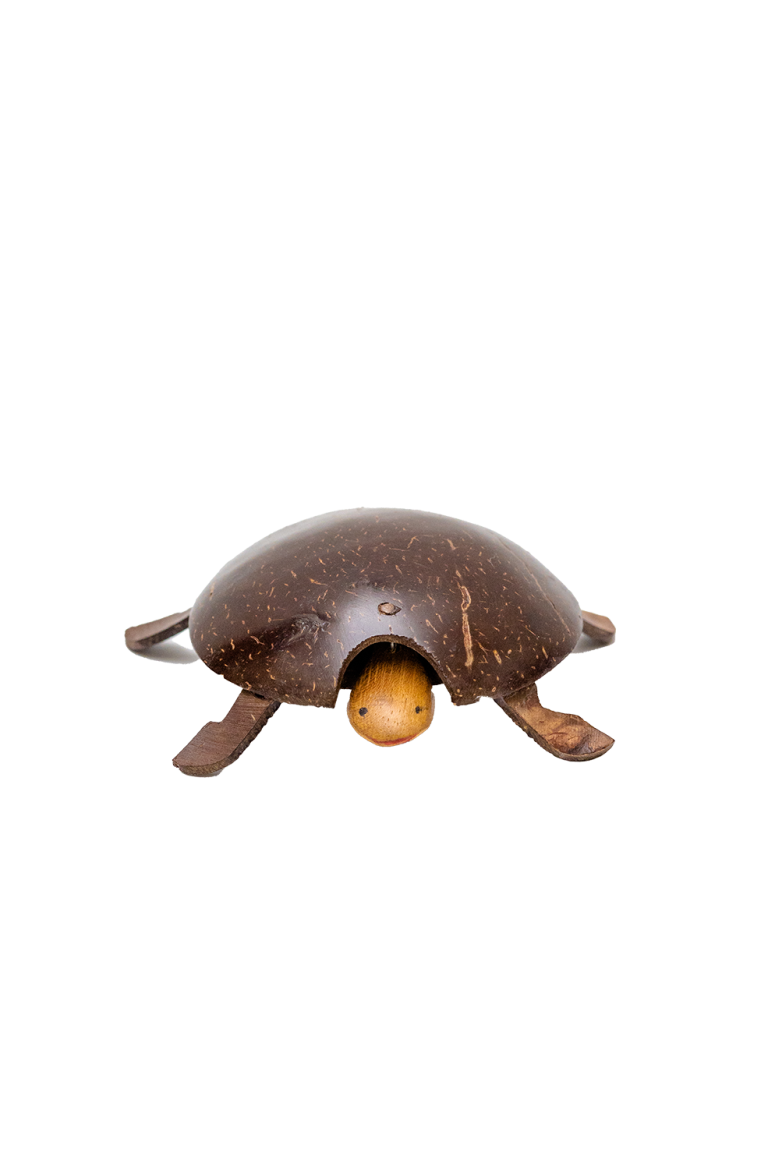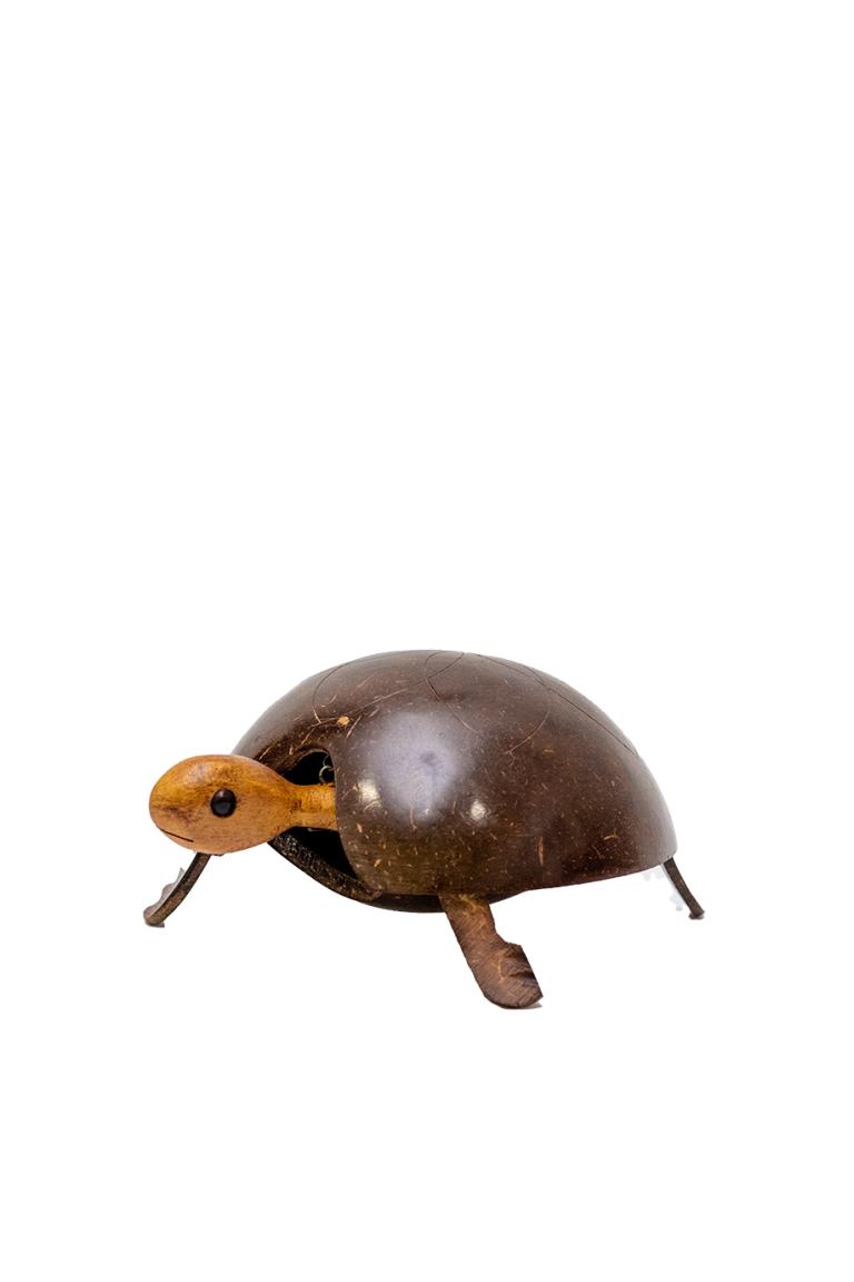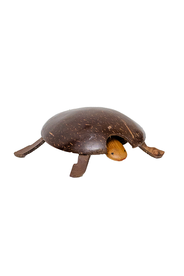 This turtle is made entirely from coconut shell. The turtle’s head is made to be flexible so that it can be turned to both sides. The turtle’s shell can be carved in any design according to the customer requirements.