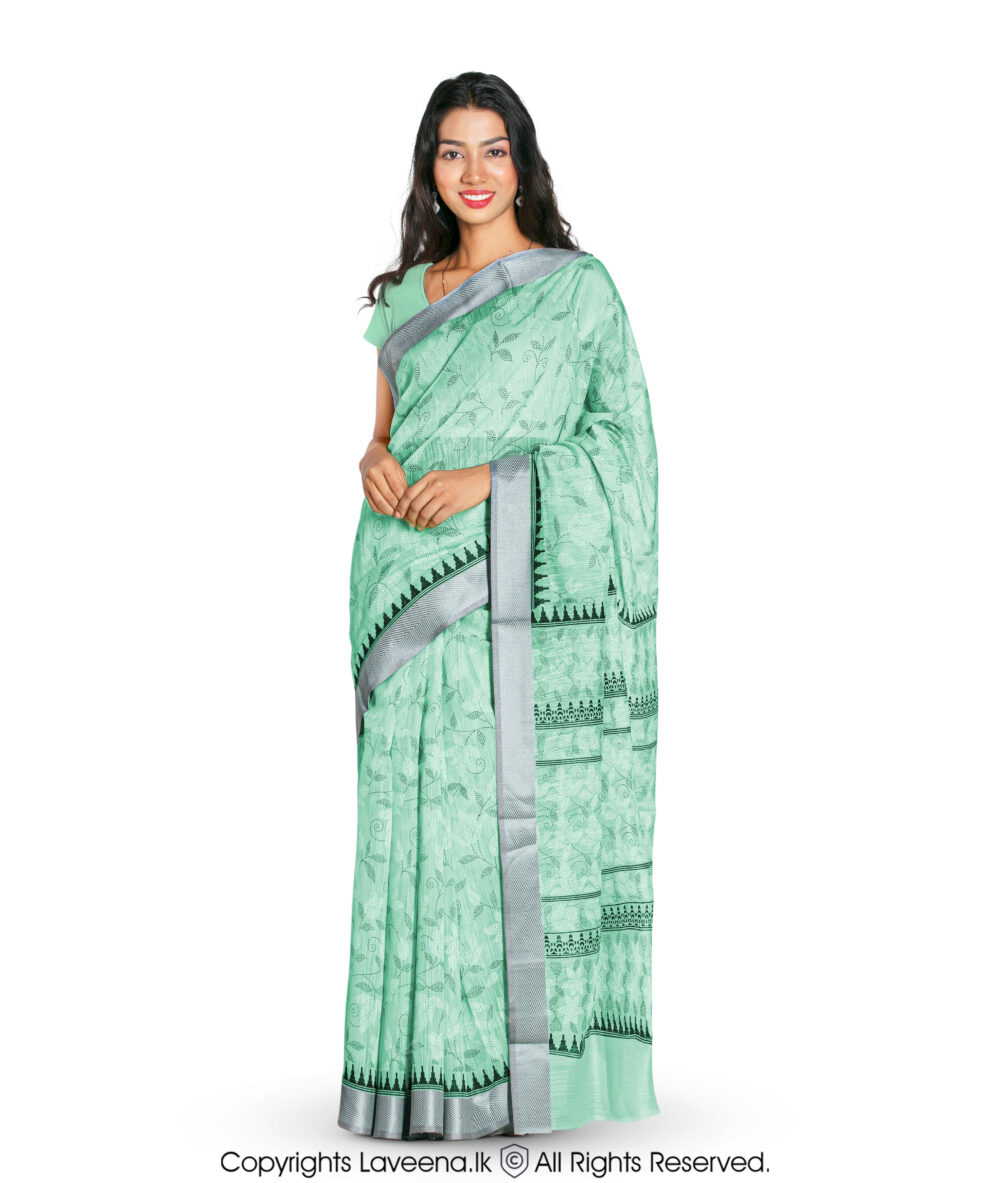 • Saree Color : Apple Green & Dark Green With White & grey