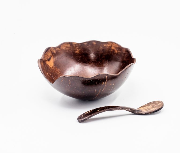 This Wave designed dessert cup is made entirely with coconut shell. The cup and spoon can be made to customized sizes and designs.